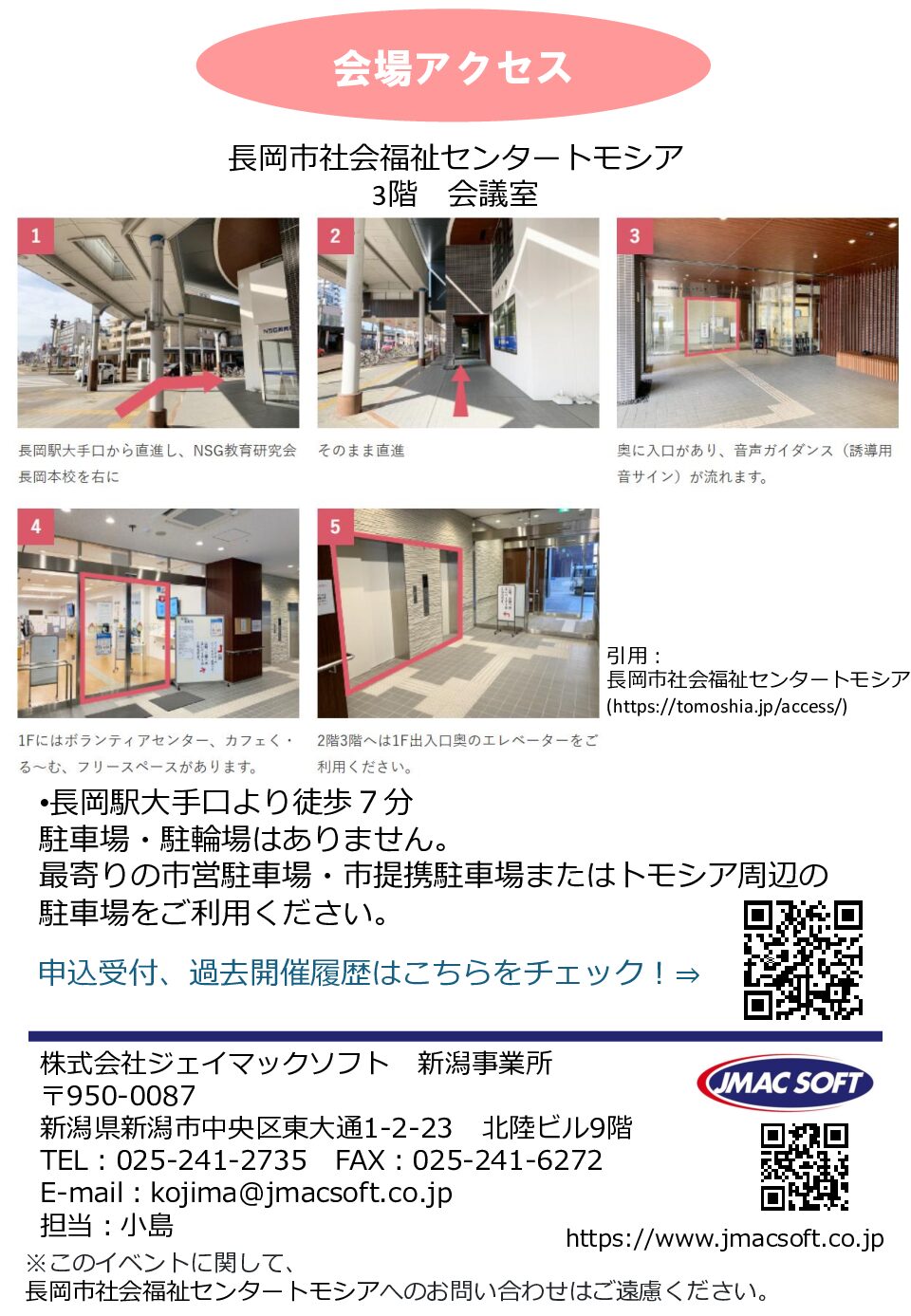 | 2025/02/15(土) | 13:00~14:30 | JMACSOFT長岡 | 無料 | 5名 | 小学生 | 5名 |